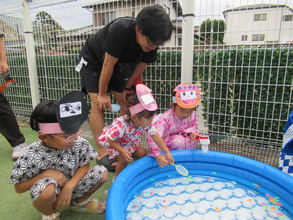 園庭では、金魚すくいとおばけの的あてで遊びました!