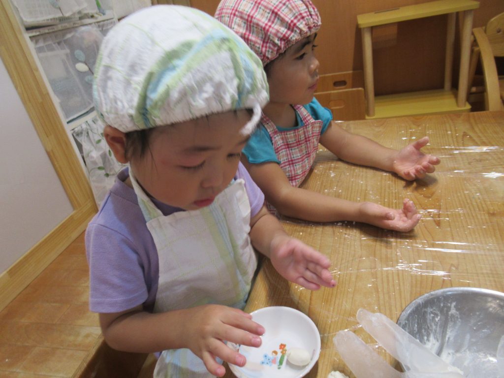 お月見の日には、白玉粉でお団子づくりを行いました。
